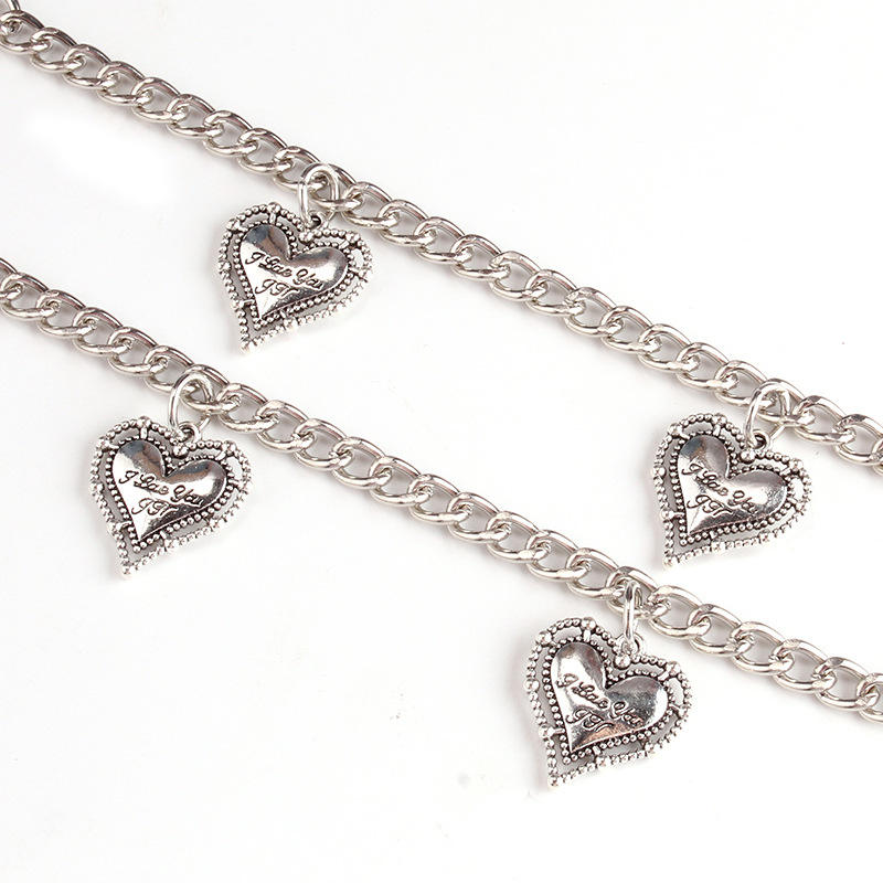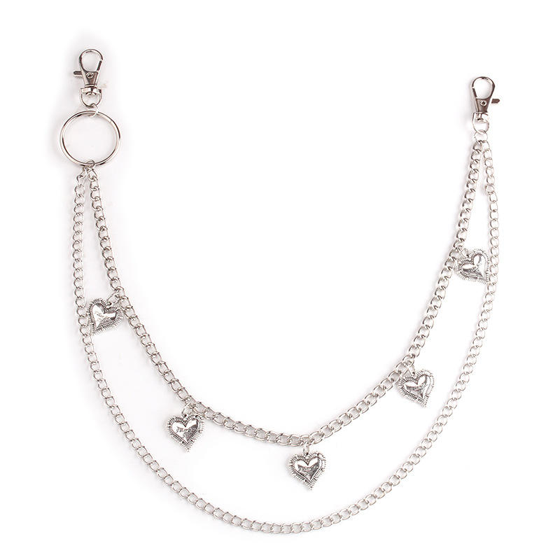 Chaîne de pantalon double couche en forme de cœur en alliage de zinc, chaîne de corps tendance pour hommes et femmes, accessoire de tous les jours