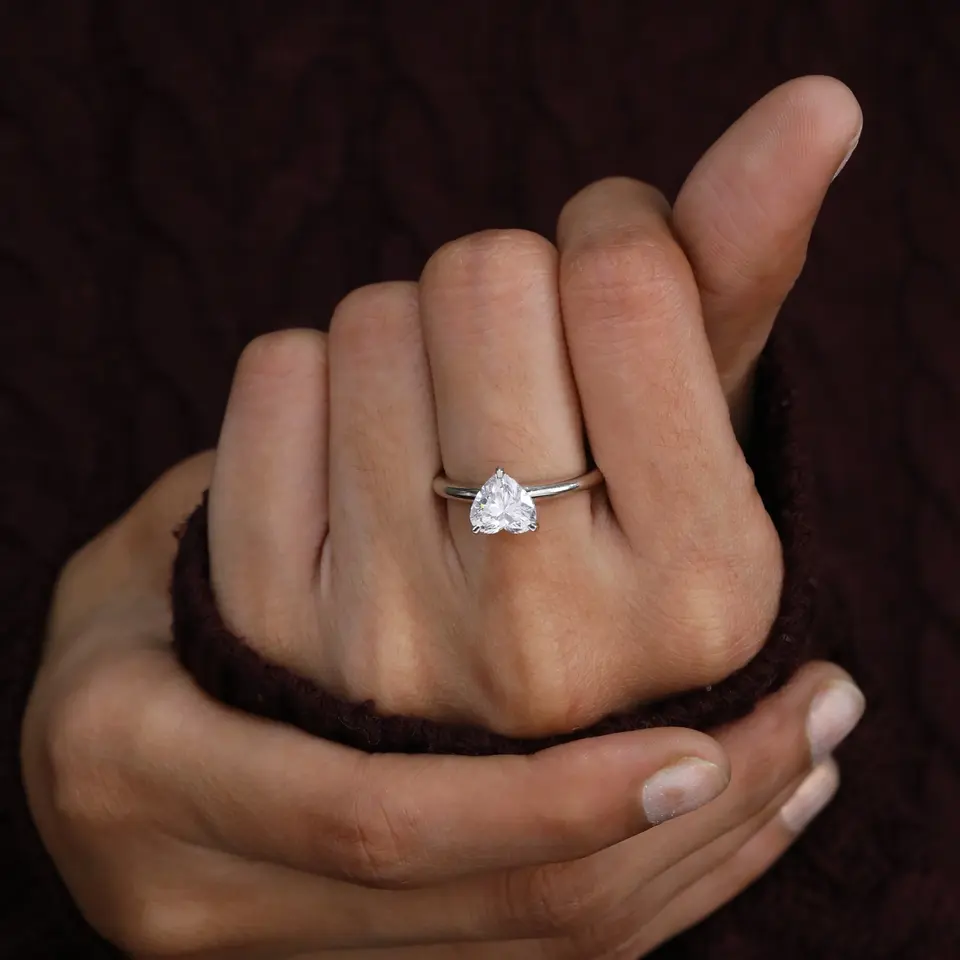 Bague de fiançailles solitaire en diamant de laboratoire en forme de cœur
