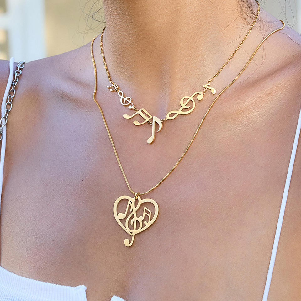 Collier pendentif ajouré en forme de note de musique en acier inoxydable plaqué or 18 carats unisexe pour tous les jours