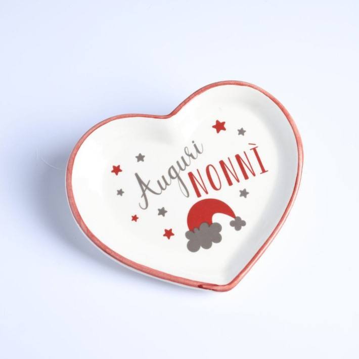 Heart Shaped Plate With Auguri Nonni Design For Grandparents Gift