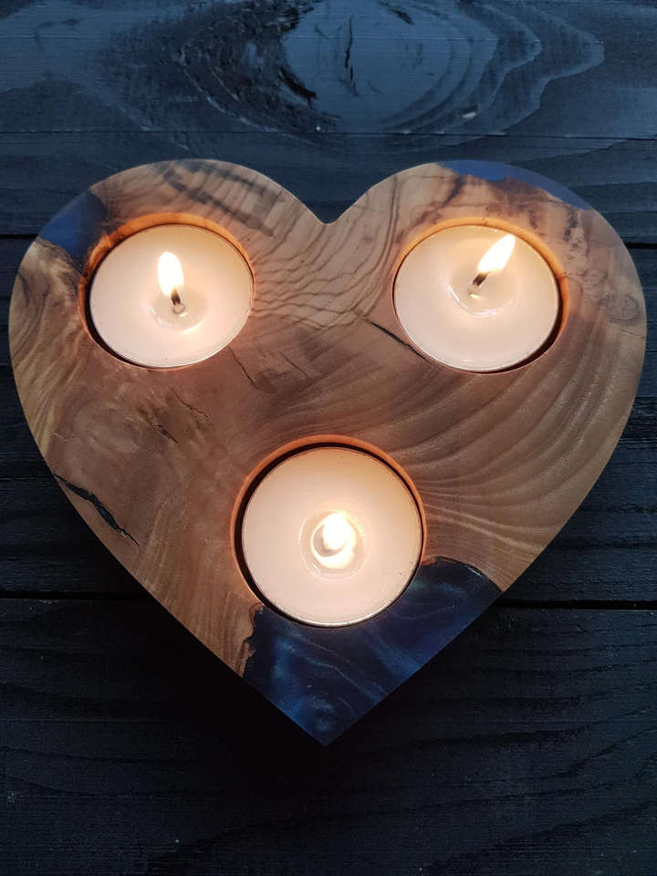 Product name:Heart Shaped Resin and Olive Wooden Tealight Holder Candle Holder