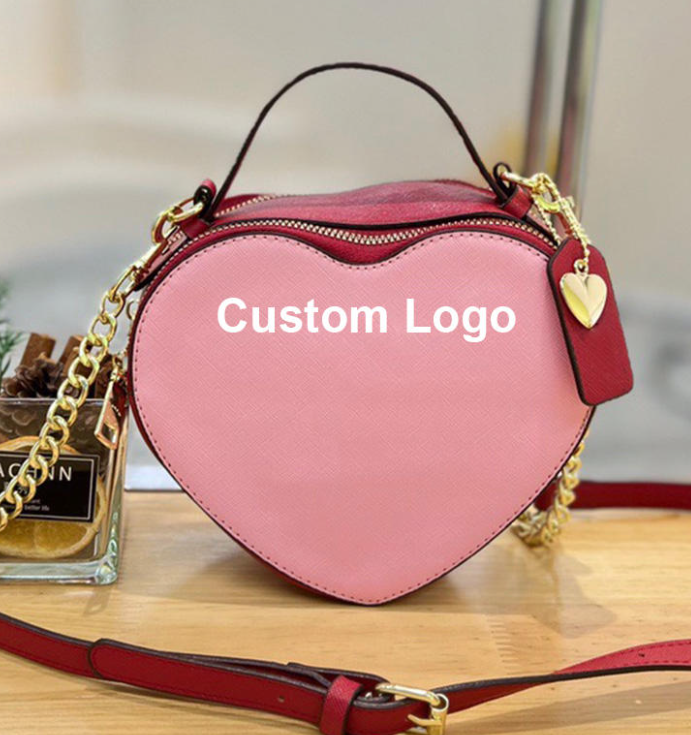 Portefeuille en forme de cœur, sac pour femme de marque, cuir PU de luxe, sac bandoulière en forme de cœur