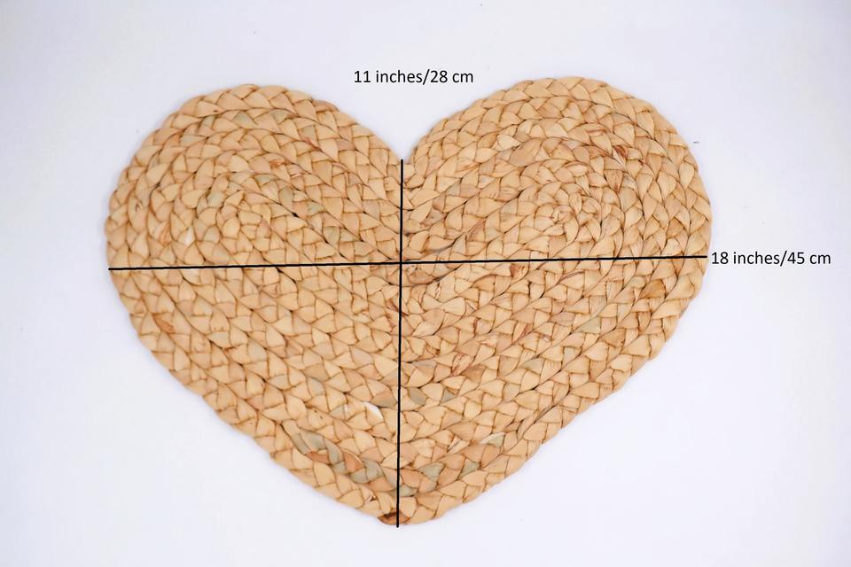 Size: L18 x W11 inch:Heart-shaped woven water hyacinth placemat
