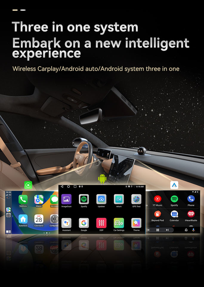 Système Android complet, CarPlay sans fil, Android Auto, AirPlay, Mirror Link.