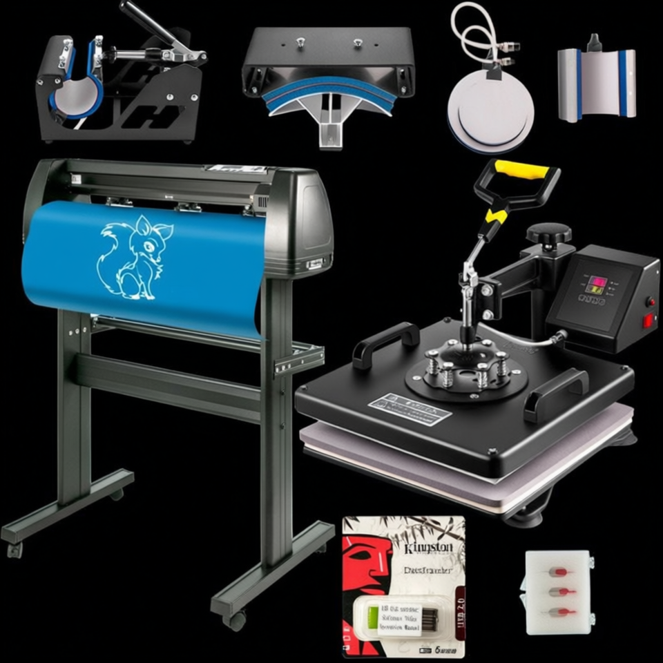 Presse à chaud 6-en-1 pour tasses et casquettes avec découpeuse de vinyle de 28 pouces, équipement d'impression manuel à plat sur pied
