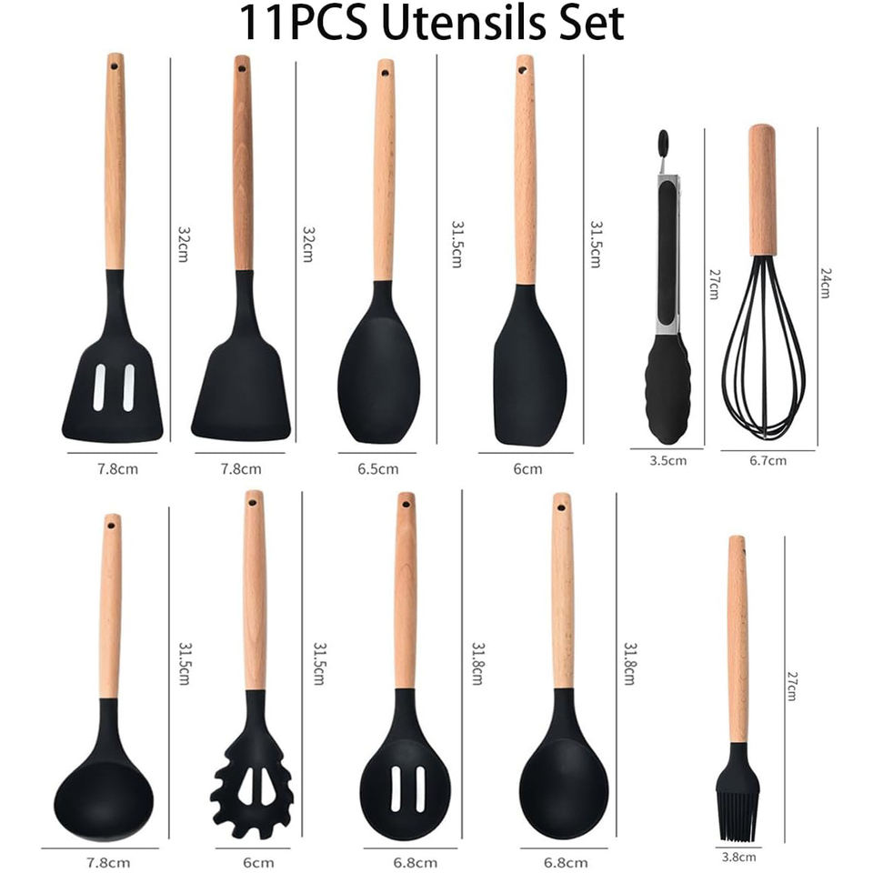Ensemble d'ustensiles de cuisine en silicone résistant à la chaleur, 19 pièces, avec ensemble de couteaux