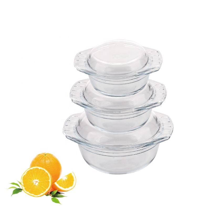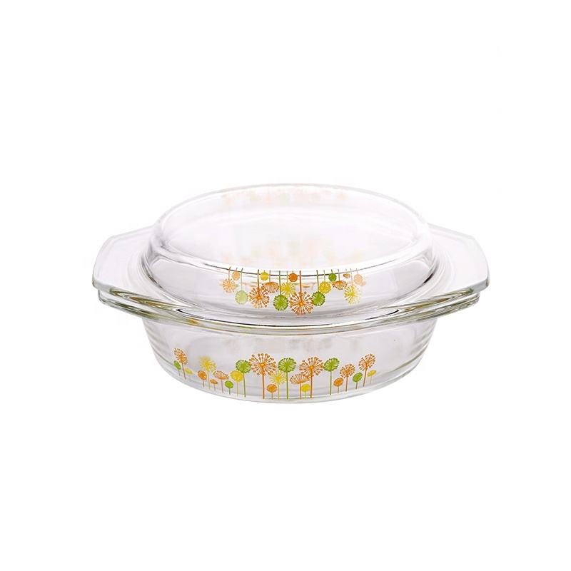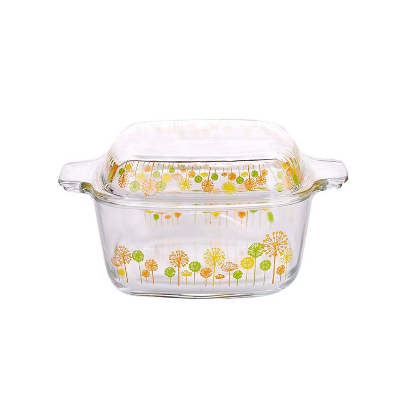 Marmite en verre de cuisson résistante à la chaleur 1L 2L 3L avec décalque de logo d'impression Casserole en verre borosilicaté de tailles multiples avec couvercle