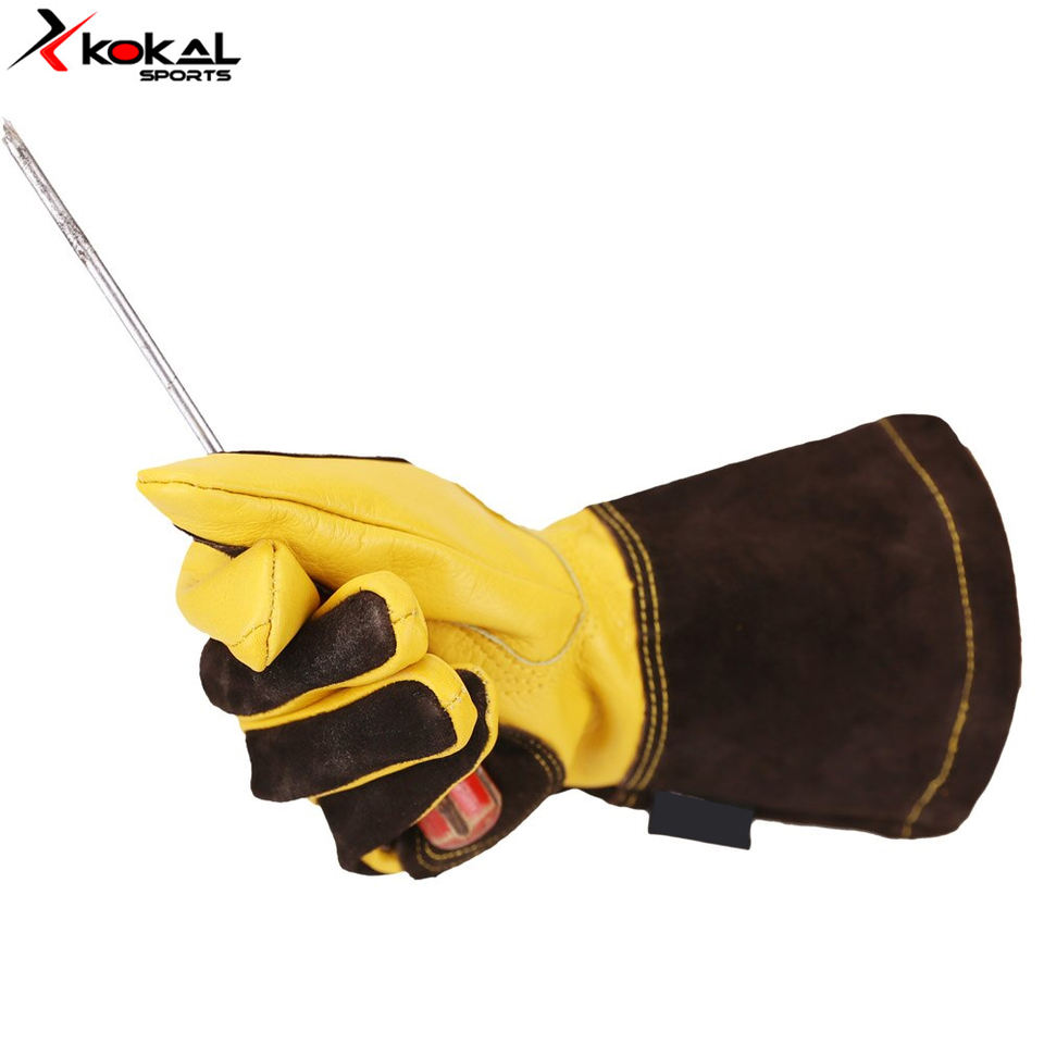 Gants de soudage de sécurité de travail en croûte de cuir de vache résistant à la chaleur pour hommes par KOKAL SPORTS