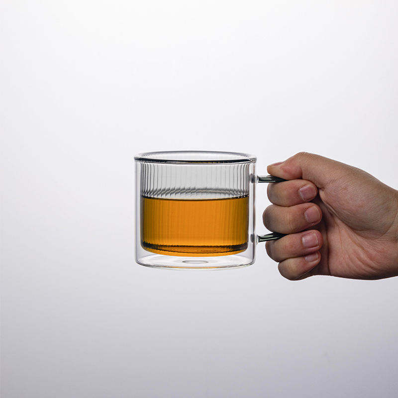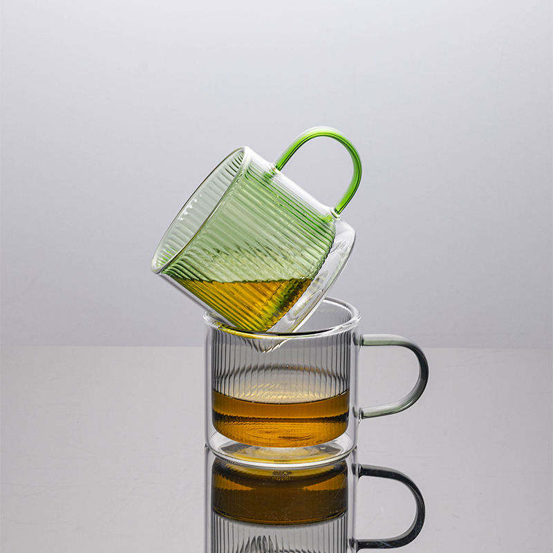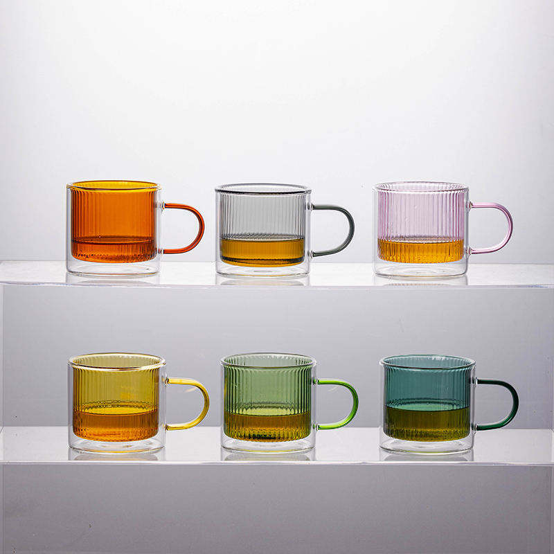 Tasse à café en verre borosilicate résistant à la chaleur avec poignée, verre à grains verticaux colorés, mug à thé au lait à double paroi