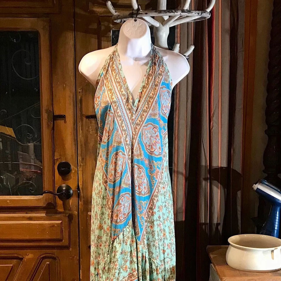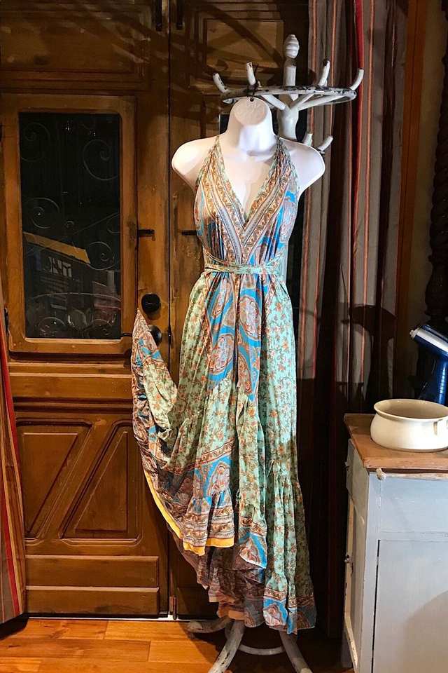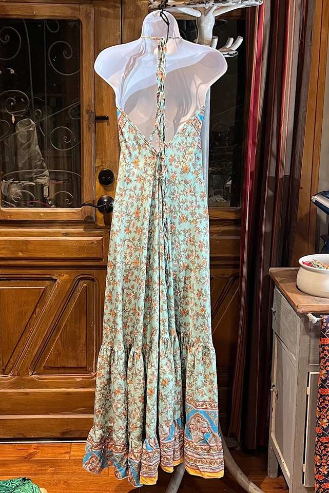 Transfert de chaleur imprimer col en v profond Maxi robe femmes robes Style de vacances 100% coton été plage porter femmes Maxi robes