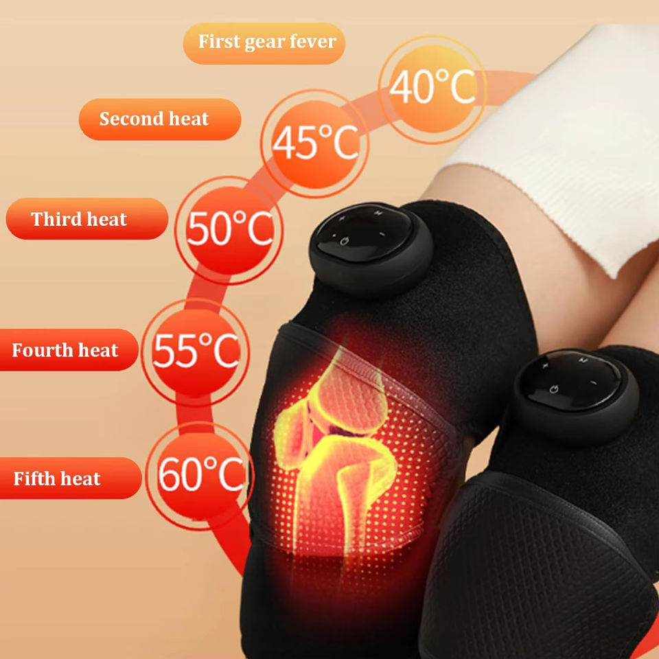 Genouillère chauffante et vibrante, bouton intelligent, réglage multi-niveaux, affichage LED