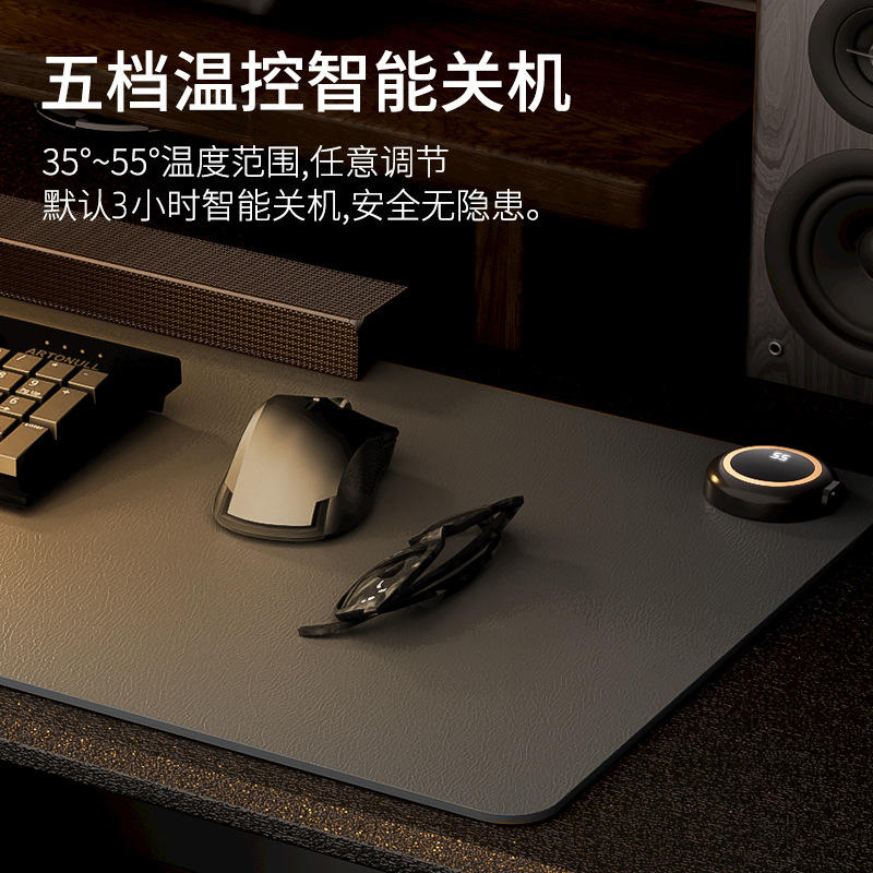 Tapis de souris chauffant 80x33 cm en cuir PU avec protection contre la surchauffe, alimentation USB, chauffe-bureau pour usage au bureau