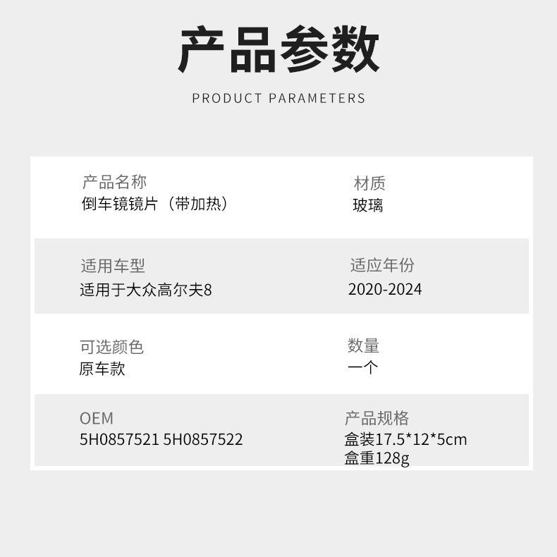 Verre de rétroviseur chauffant pour Volkswagen Golf 8 2020-2024, pièces de rechange gauche et droite, noir