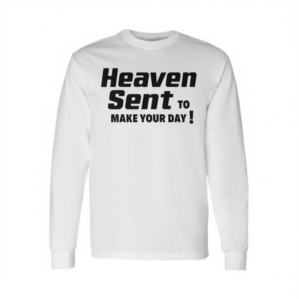 Heaven Sent to Make Your Day Long Sleeve Crew Neck T-Shirt Silk Screen Printed Wholesome Positivity Quote Vibe Unisex