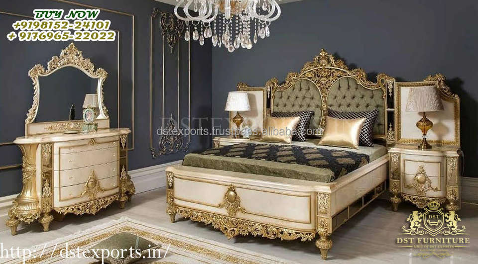 Heavy Carved King Size Bed With Nightstands