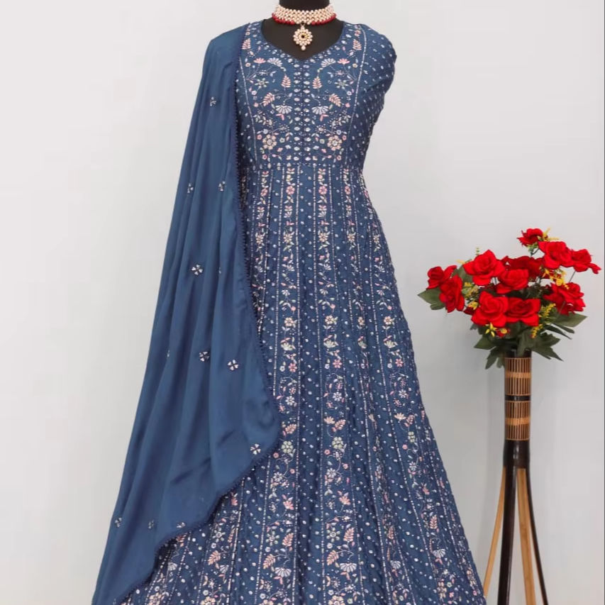 Chinon lourd avec séquence broderie Stich travail Chinon lourd avec travail avec Dupatta costume mariage fête Inde produit en vrac