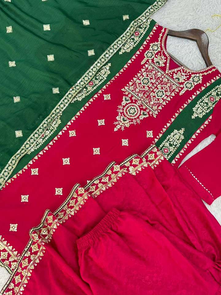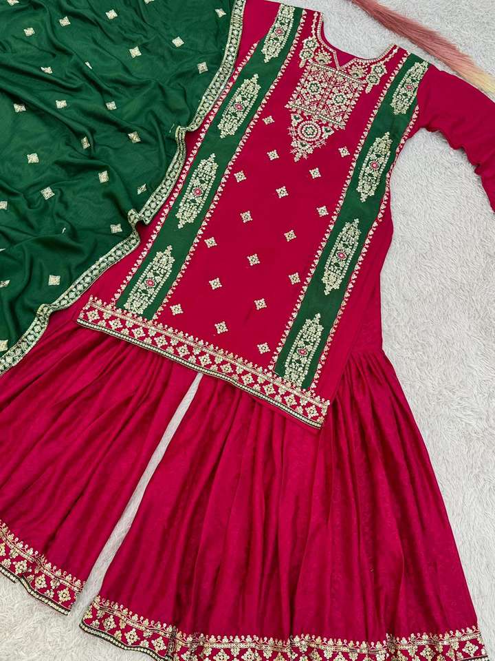 Nom du produit:Chinon Soie Séquence Broderie Top & Sharara Avec Dupatta