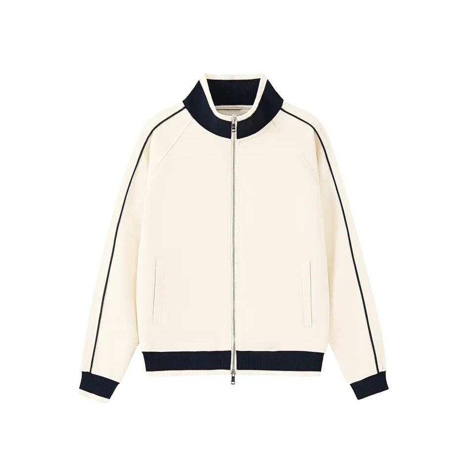 Sweat-shirt à col montant contrasté et manches raglan avec double fermeture éclair pour homme – Manteau décontracté automne-hiver
