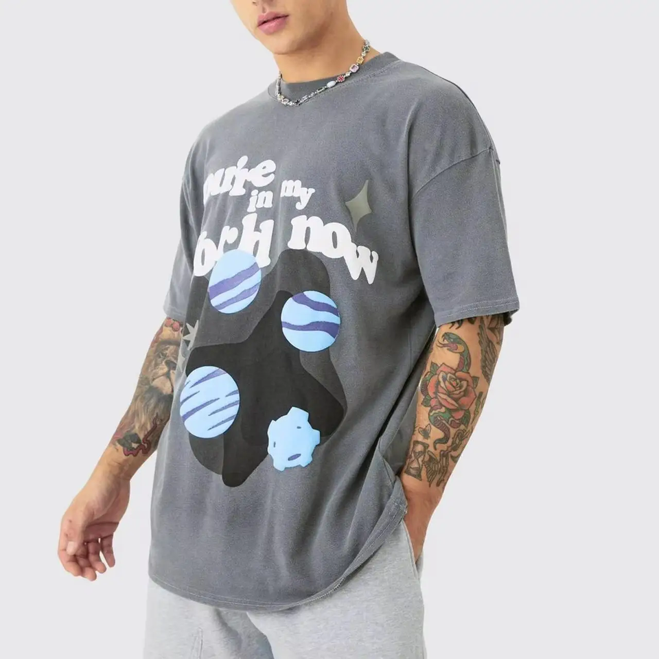 T-shirt en coton lourd 260 g/m² avec impression de lettres personnalisées en relief, style hip-hop surdimensionné, col rond, t-shirt imprimé en relief