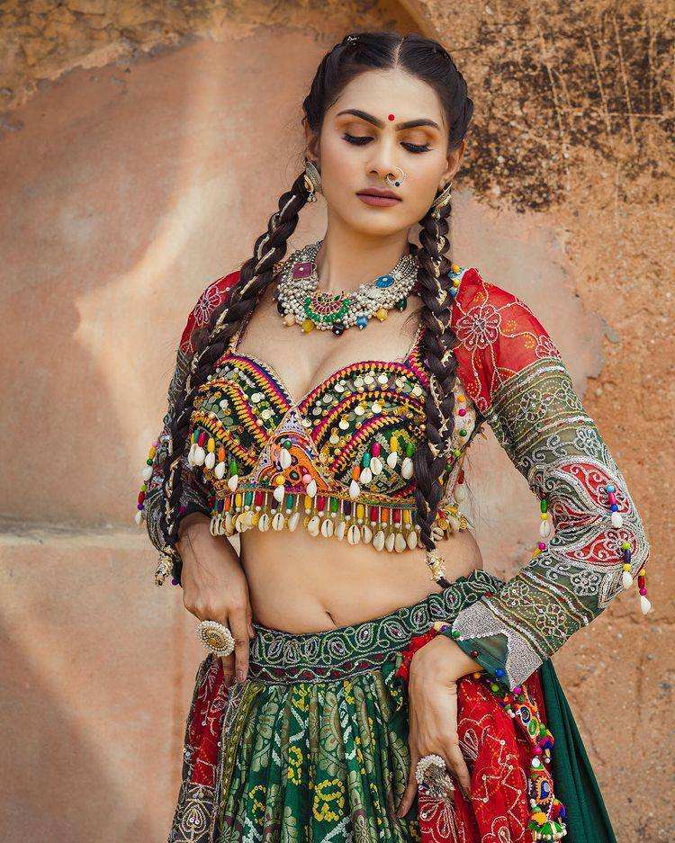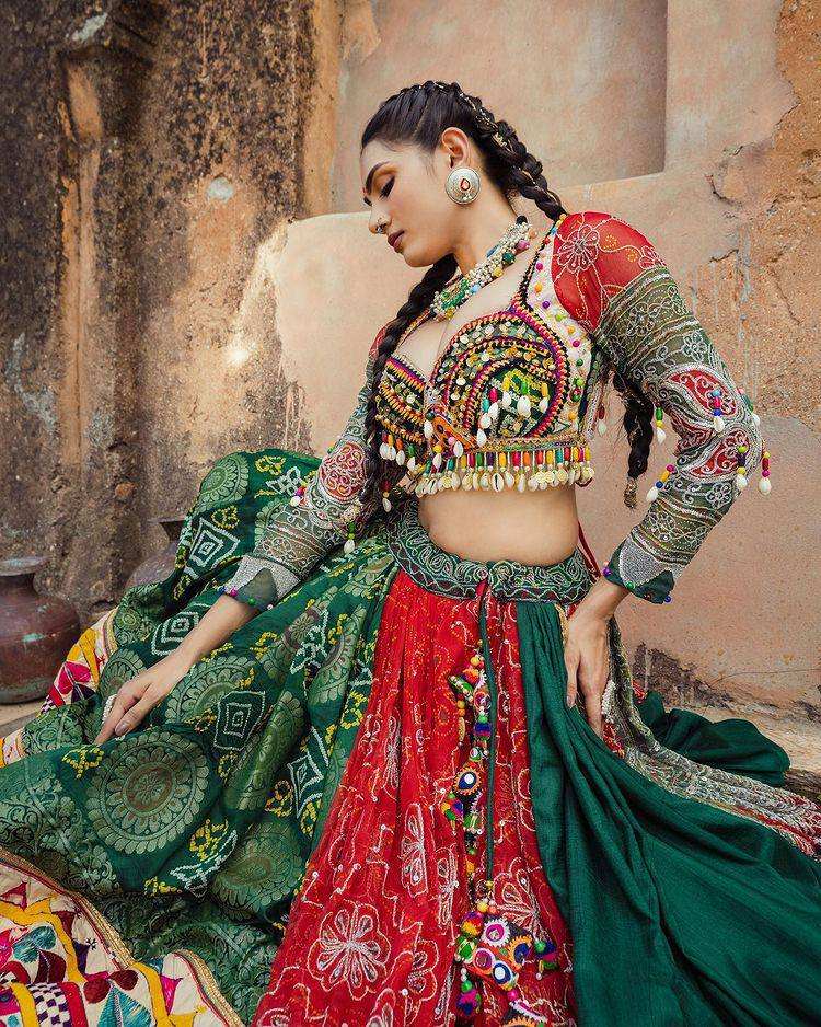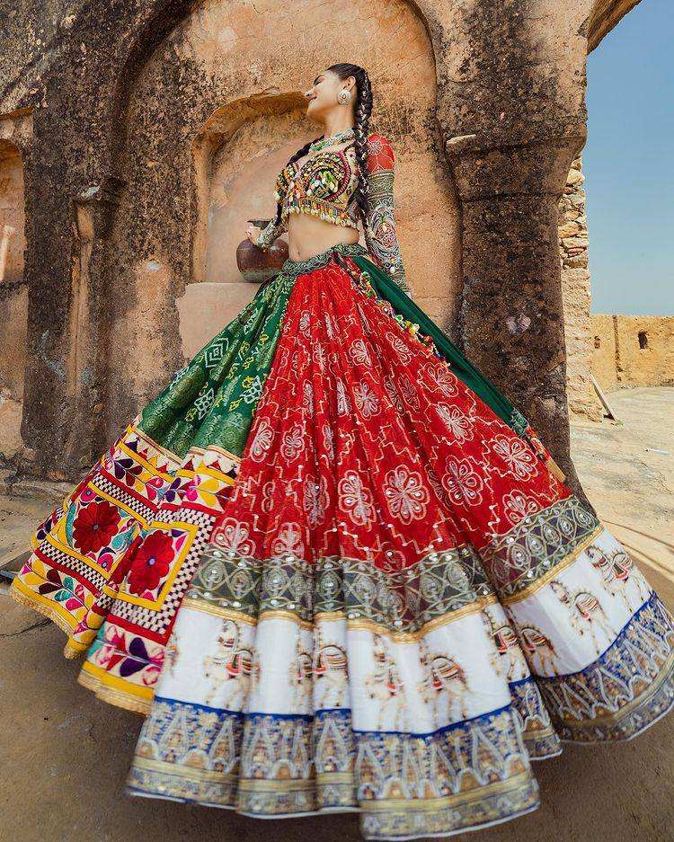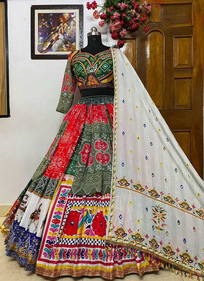 Nom du produit:Beurre Soie Impression Numérique & Miroir Travail Lehenga Choli Dupatta