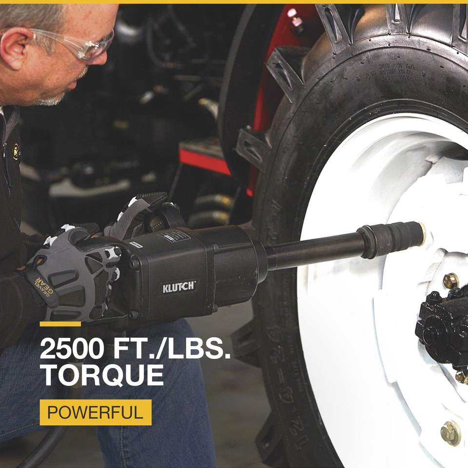 Clé à chocs pneumatique robuste de 1 pouce avec anse de 8 pouces et poignée en D, 10 CFM, 2 500 Ft.-Lbs. Mécanisme à double marteau à couple élevé