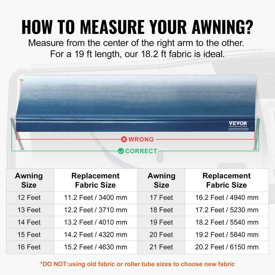Tissu de remplacement pour auvent de camping-car, robuste, en PVC 16 oz, 3 plis, longueur 18,2 po, imperméable, pour accessoires extérieurs