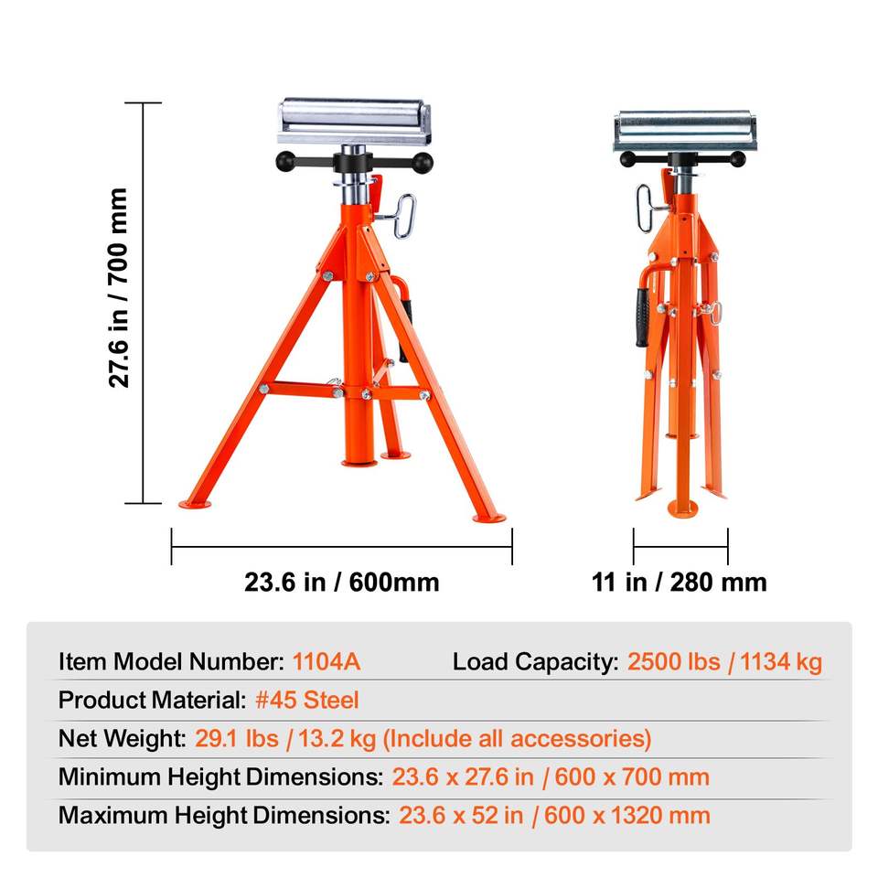 Support à roulettes robuste, capacité de charge de 2500 lb, hauteur réglable de 27,6 à 52 pouces, 45 # Machines à poutrelles en acier pliantes pour charpentes métalliques