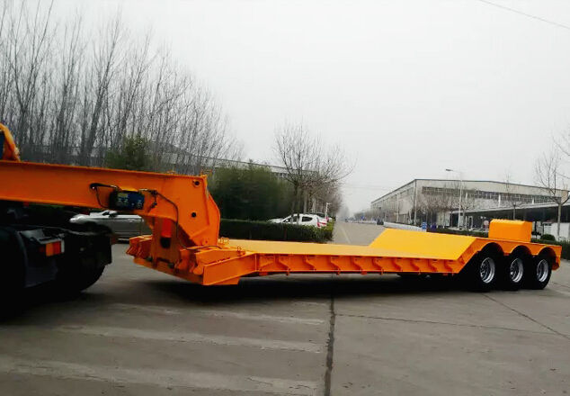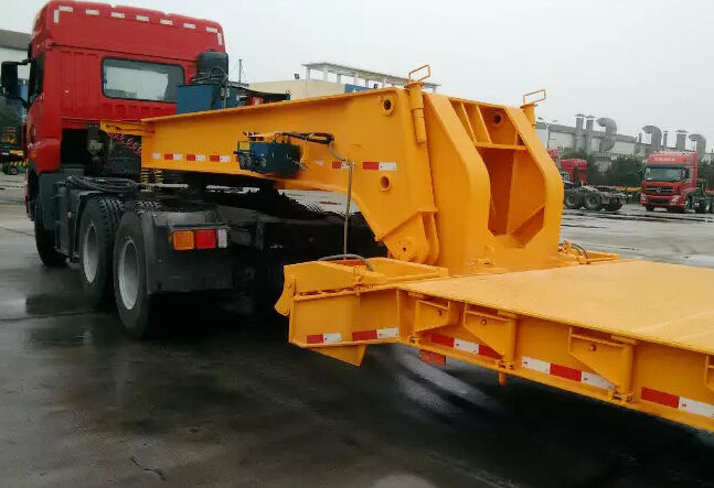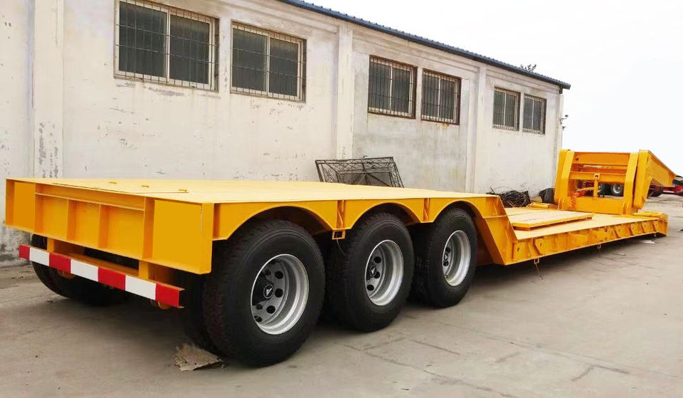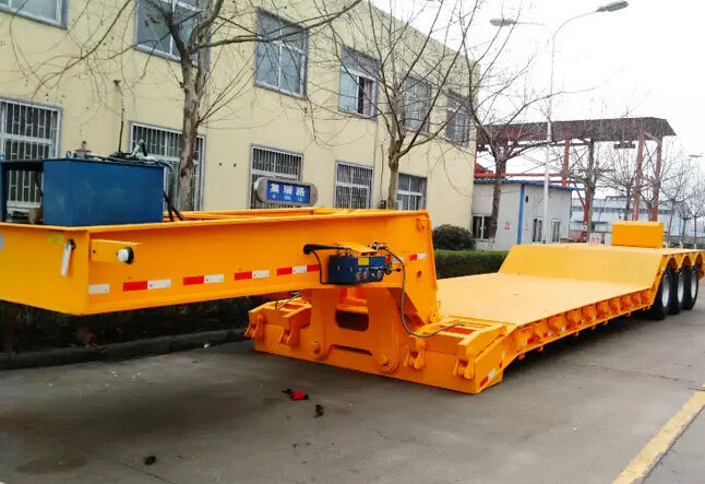 Semi-remorque à plateau surbaissé hydraulique détachable en acier à 3 essieux de 40 pieds, remorque de camion lourd, remorque de chargement bas, camion à vendre