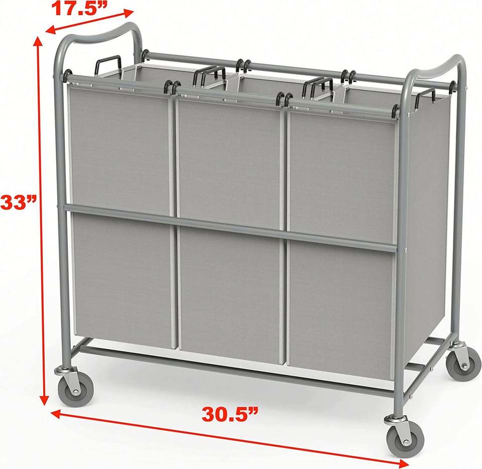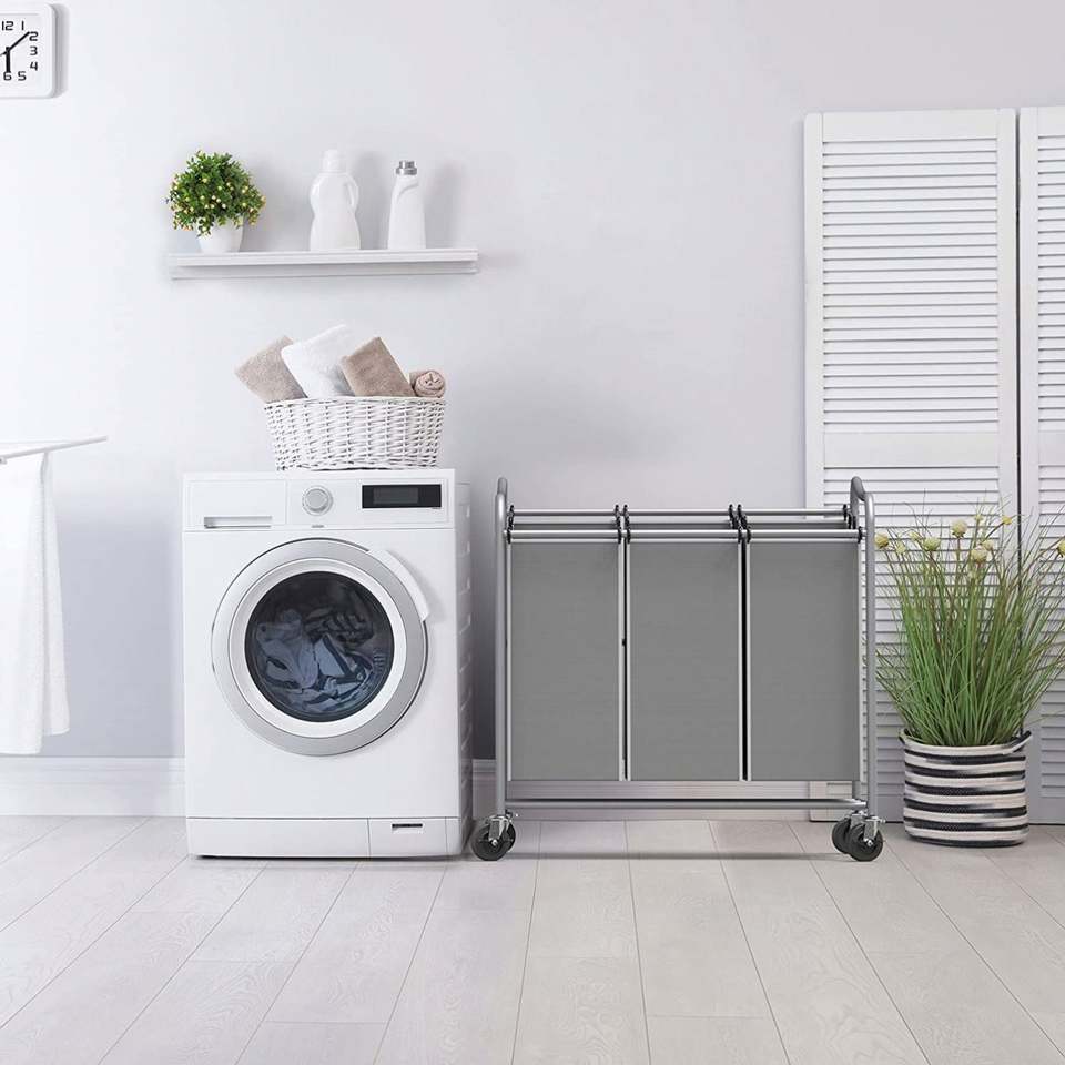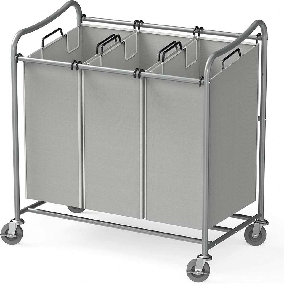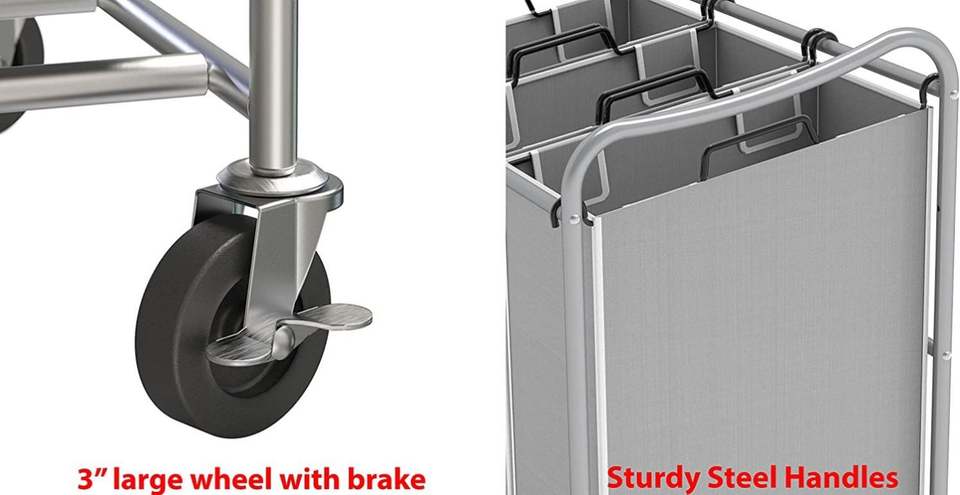 Chariot de tri du linge à 3 sacs, robuste, argent