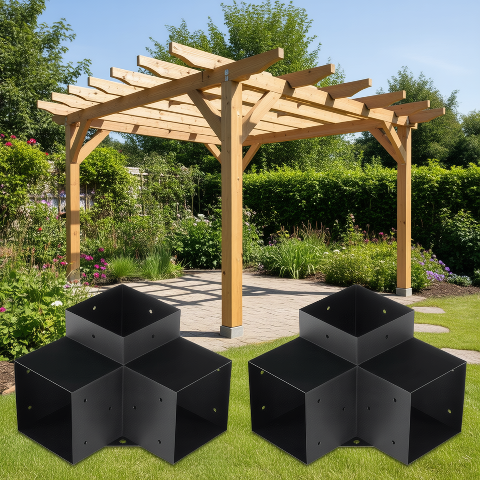 Kit de supports d'angle 3 voies 6x6 pouces, épaisseur 5 mm, 4 pièces, en acier thermolaqué pour l'installation de pergolas extérieures et de travaux en bois