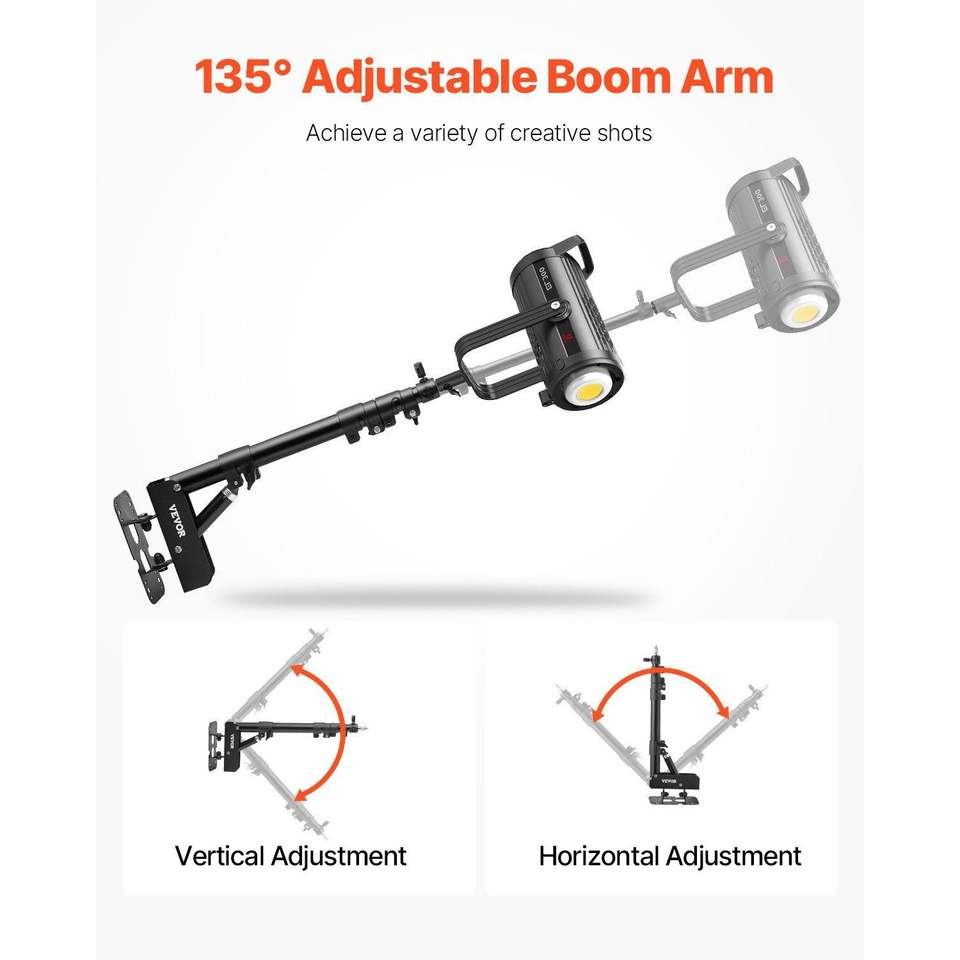 Support mural robuste pour anneau lumineux avec bras triangulaire de 39,37 po/100 cm et rotation à 180 degrés, accessoires de studio photo