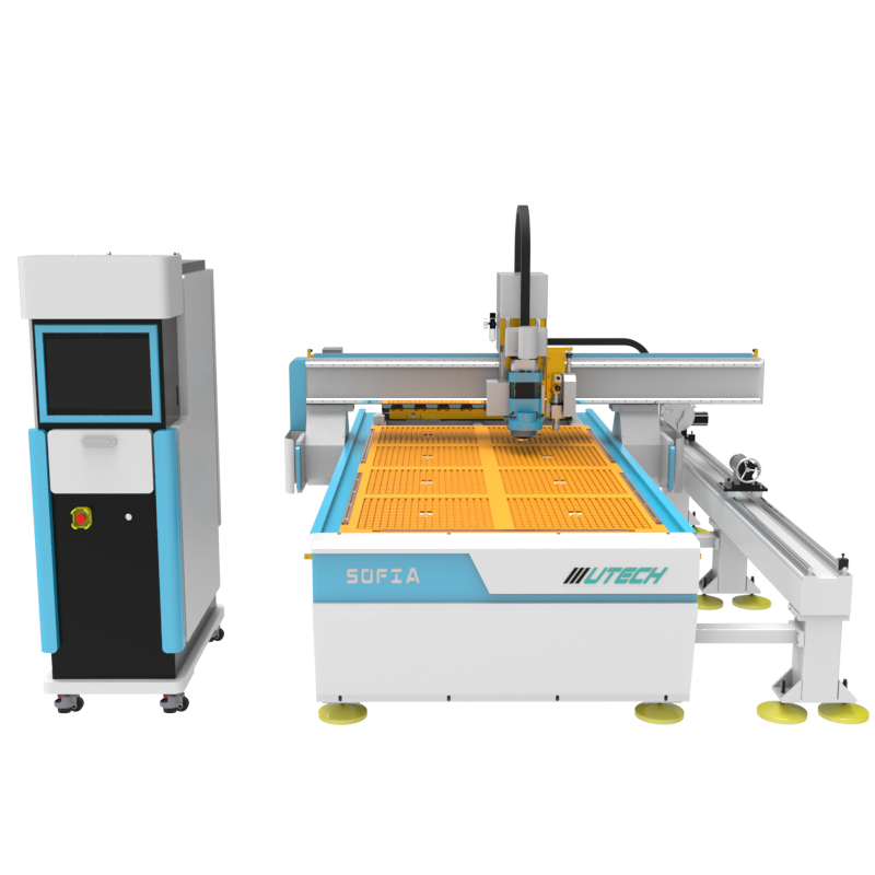 Machine de découpe à couteau oscillant CNC à 4 axes robuste, routeur CNC avec axe rotatif, changeur d'outils automatique CCD
