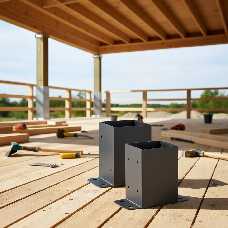 Support de poteau robuste 4x4 3.6x3.6, noir mat thermolaqué, pour support de garde-corps de terrasse et de pavillon