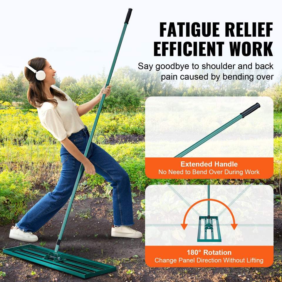Râteau de jardin en acier robuste de 78 pouces, outil de nivellement de pelouse de 48 x 10 pouces avec manche allongé pour le nivellement de la pelouse et les travaux de jardinage