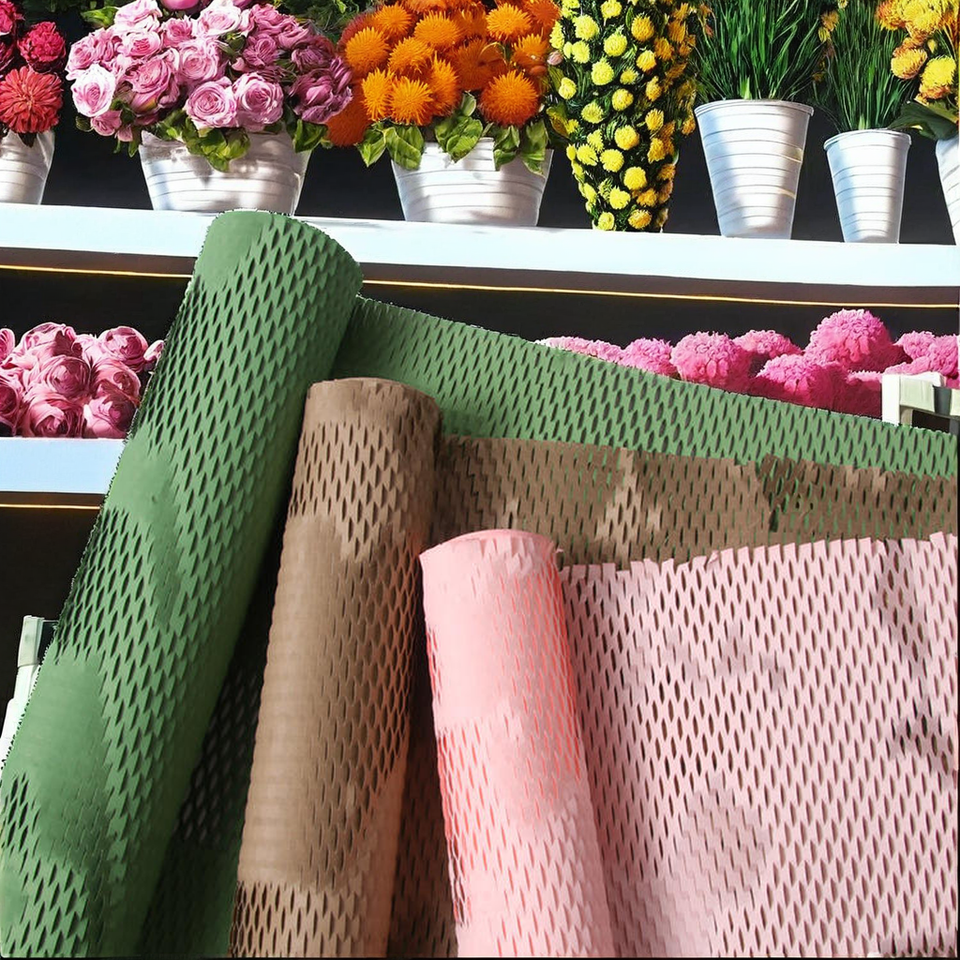 Papier nid d'abeille robuste 80 g/m² en PVC recyclé biodégradable simple face pour fleuriste, protection de bouquets, écologique, pour cadeaux et artisanat