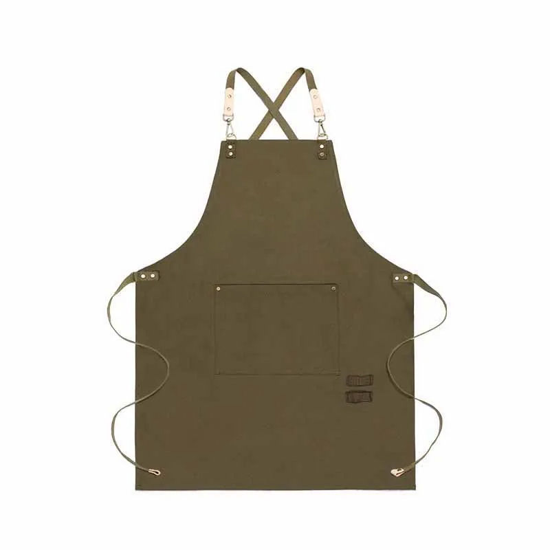 Tablier de travail réglable à dos croisé robuste Tablier de chef Tabliers en toile avec grandes poches