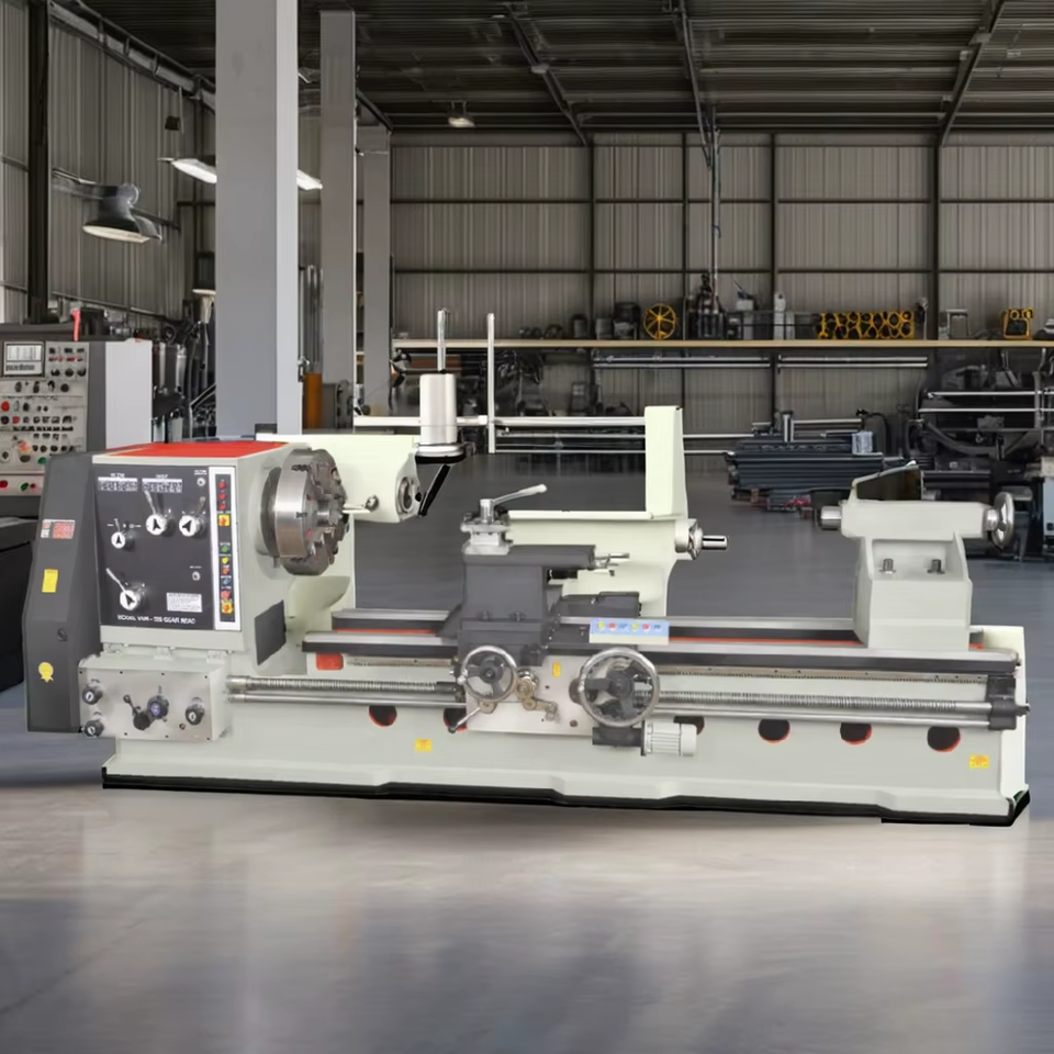 Tour à métaux robuste à engrenages, longueur de banc de 7 pieds, hauteur du centre de 15 pouces, diamètre du mandrin de 3 pouces, avec boîte de vitesses Norton