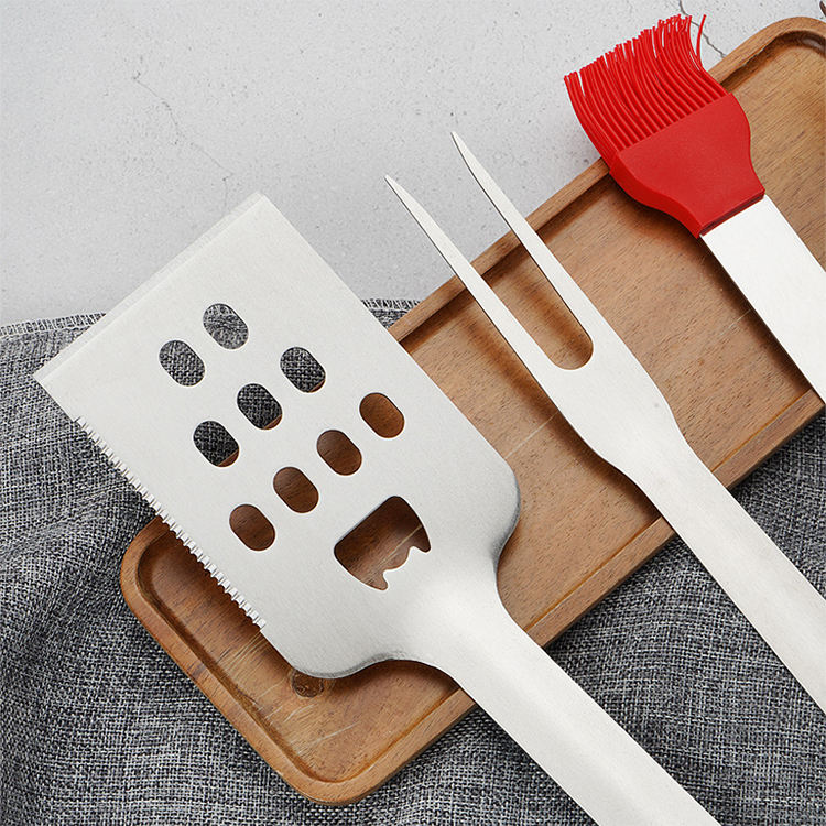 Outils de barbecue robustes, 4 pièces, accessoires de barbecue en acier inoxydable, ensemble d'outils avec poignée en plastique noir pour la maison et le camping