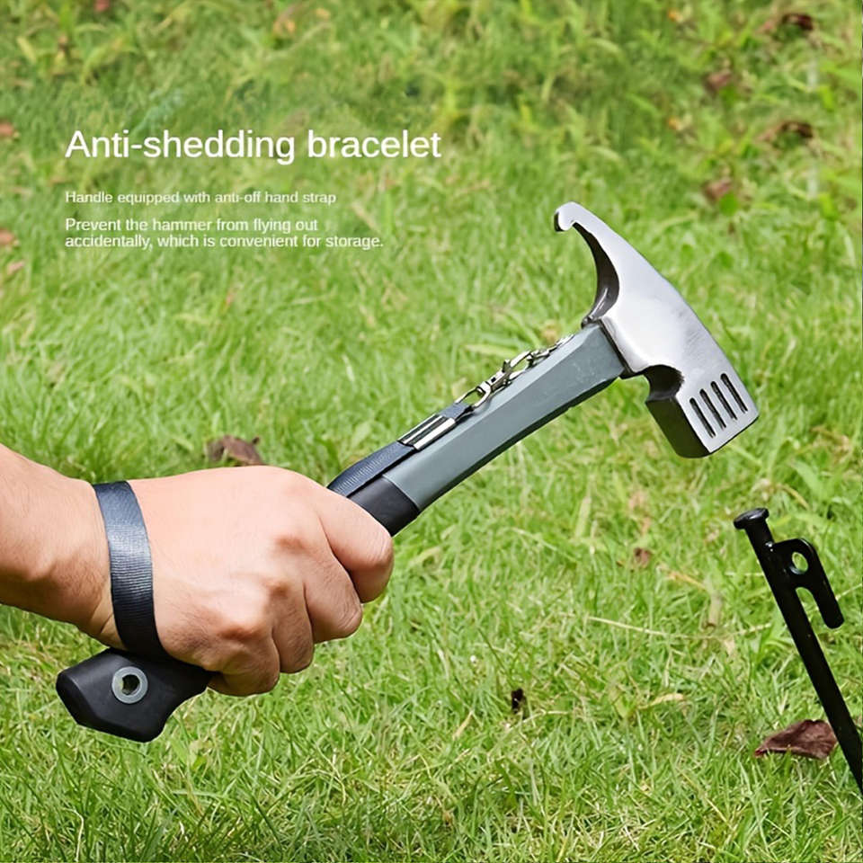 Heavy Duty Camping Hammer Tent Stake Remover Durable Carbon Steel Head Outdoor Adventures with Safety Strap for Nail Pullers