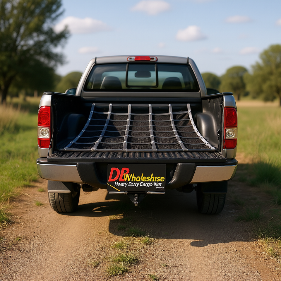 Filet de chargement robuste DB Wholesale 8 x 6,7 pieds avec mailles et crochets en S pour le contrôle du chargement sur la benne de camionnette
