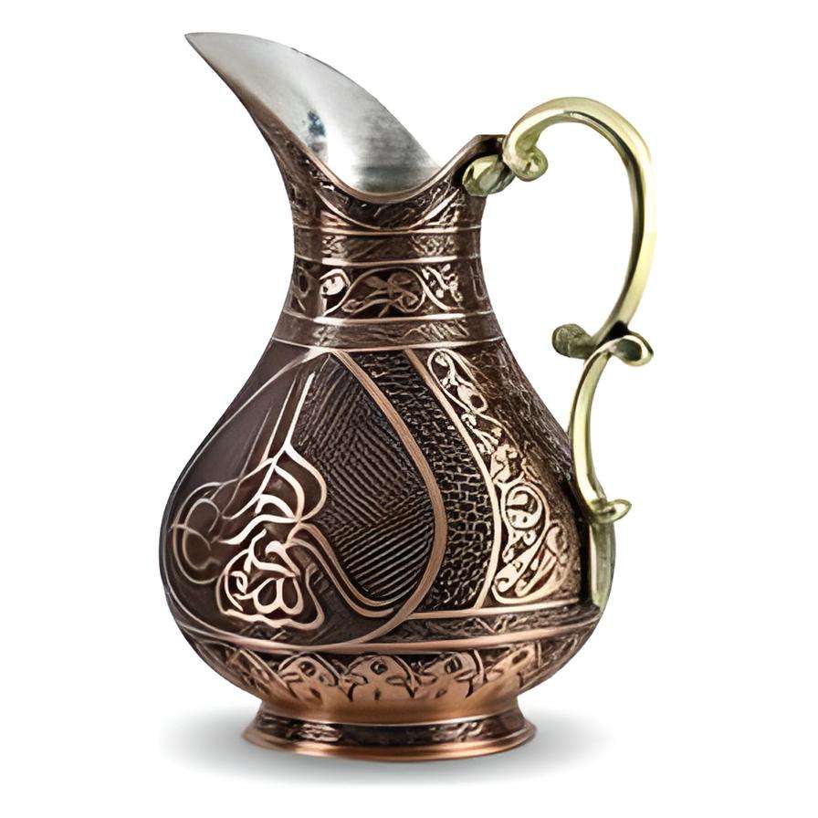 Pichet à eau en cuivre robuste avec gravure détaillée, poignée en laiton, carafe pour hôtels, décoration intérieure, ustensiles de cuisine, restaurant