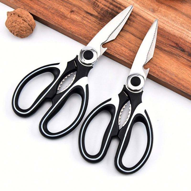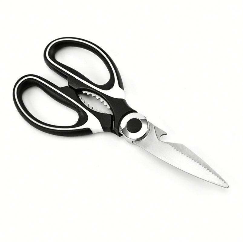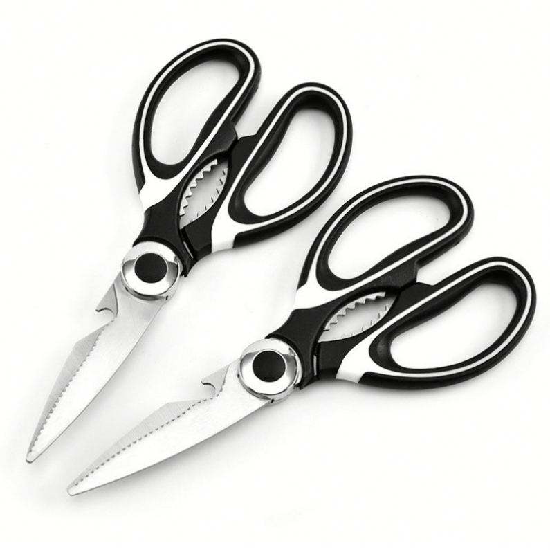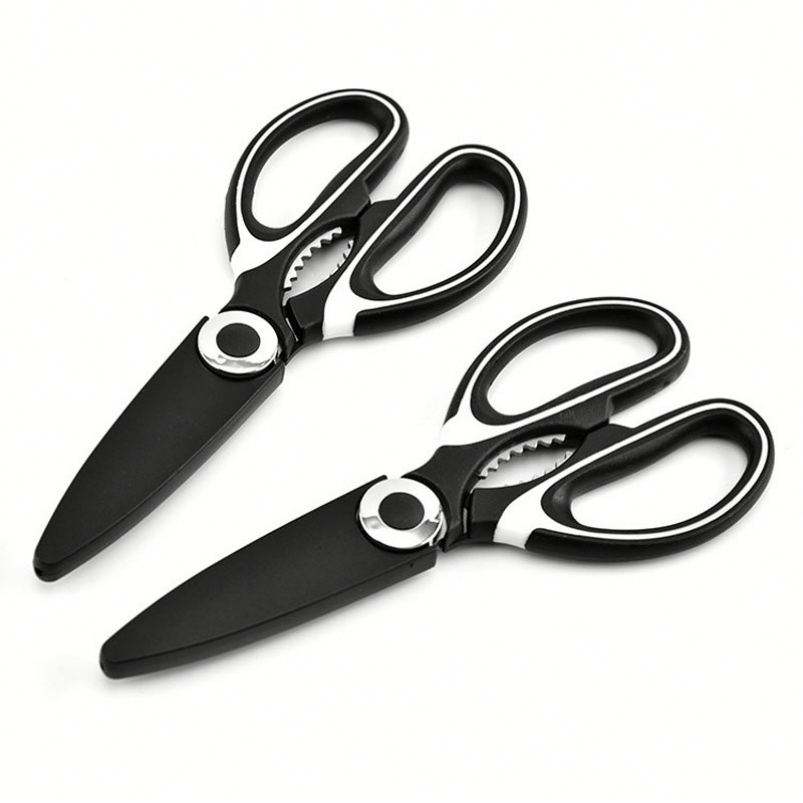 Ciseaux de cuisine robustes et écologiques, compatibles lave-vaisselle, en acier inoxydable noir, polyvalents pour la préparation des aliments et la découpe de la volaille