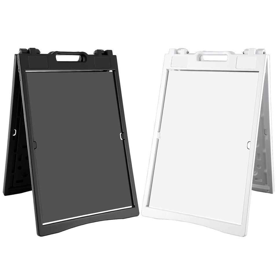 Heavy Duty double face Portable A-Frame Sidewalk Curb Sign 24x36 Inch Slide-in Folding Black Coated Metal Sign avec main bar
