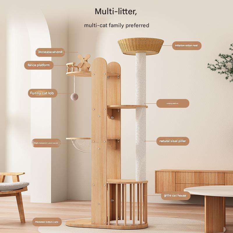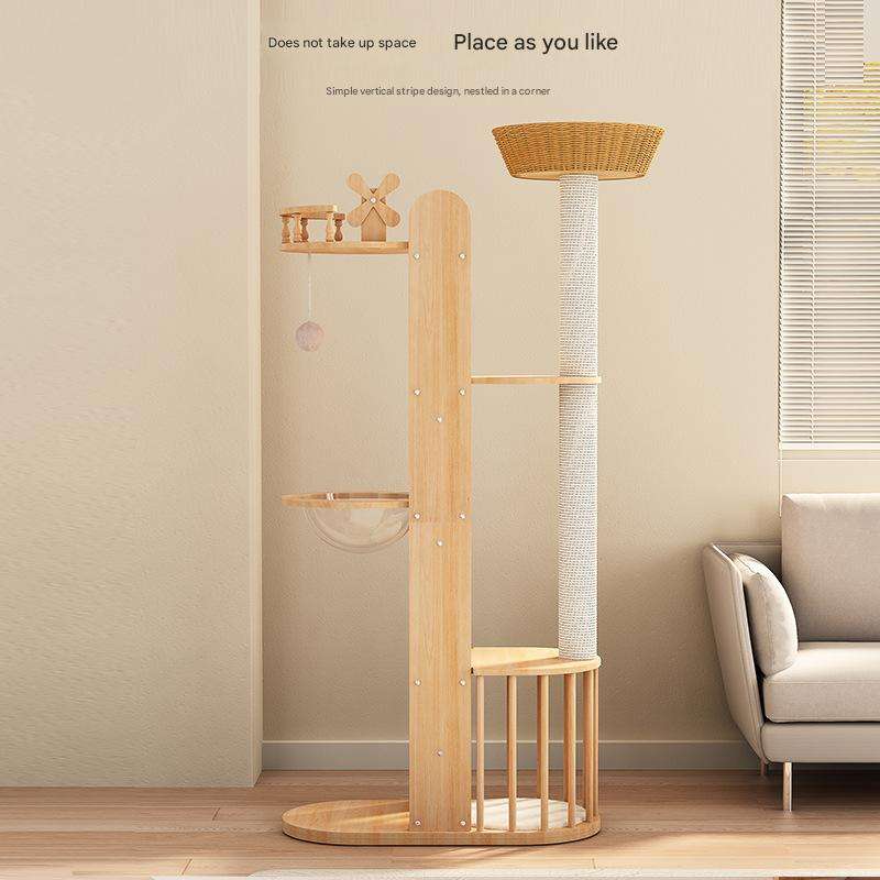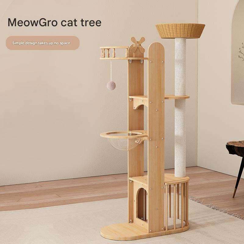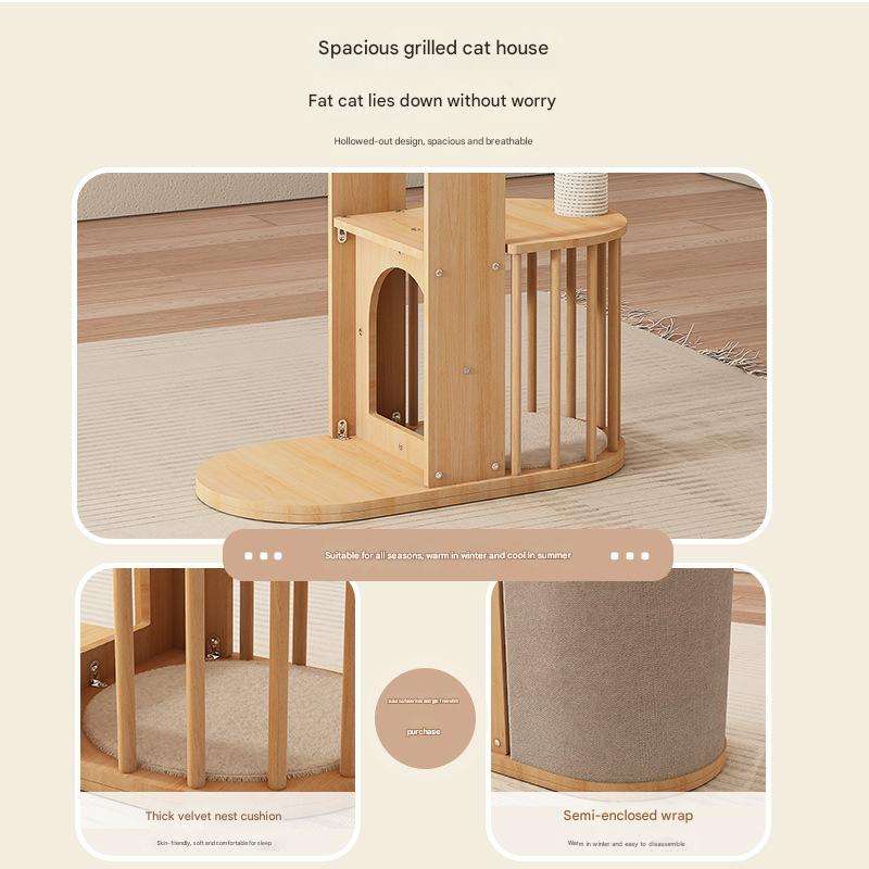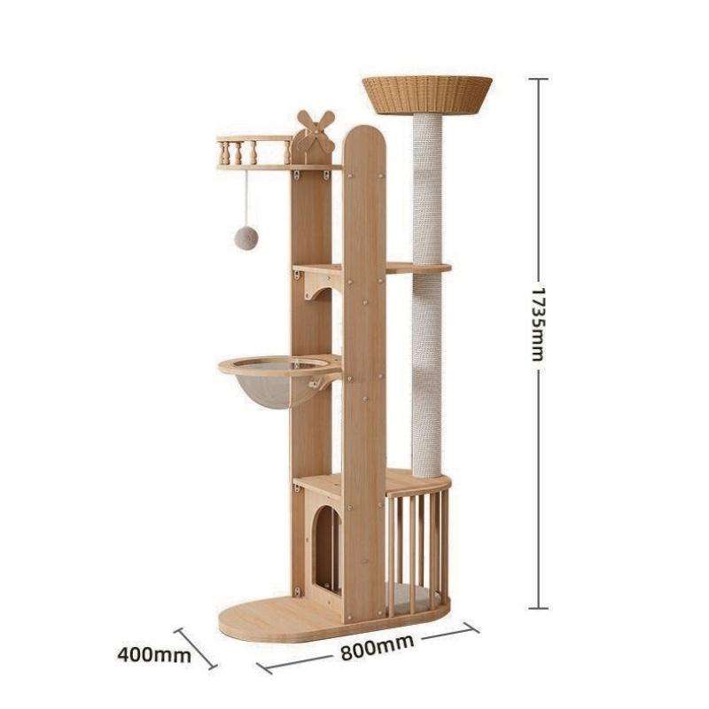 Arbre à chat en bois robuste et durable, style original, structure d'escalade intérieure à 4 niveaux, meuble de repos stable et sûr