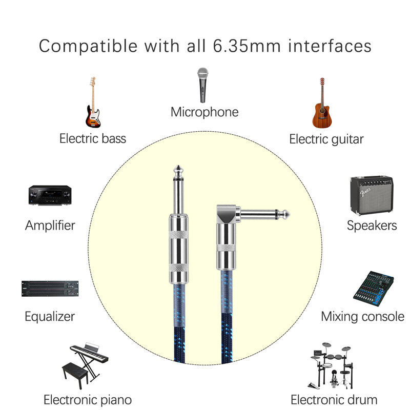 Heavy Duty Electric Guitar Cable 6.35mm TS Mono Audio Cord with Noise Suppression - 3/6/10 Meters for Bass Amp & Pedalboard