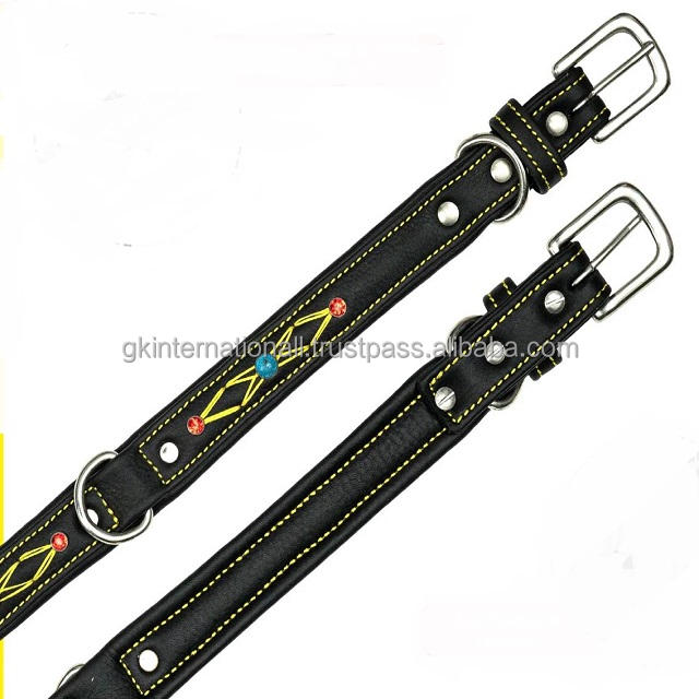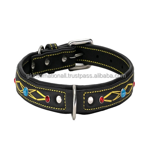 Collier de chien en cuir noir fantaisie de créateur entièrement réglable robuste tailles personnalisées collier pour animal de compagnie en cuir clouté rouge bleu à bas prix
