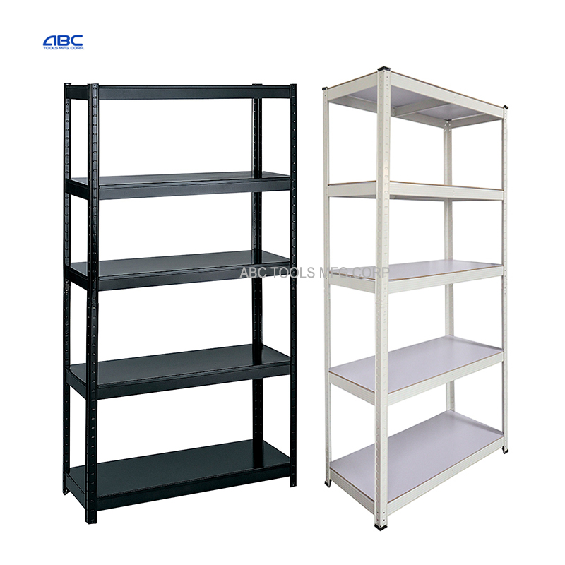 Étagères de rayonnage en fer à 5 couches fendues/conception stratifiée par rivet Le support Boltless en métal galvanisé résistant rayonne noir/blanc