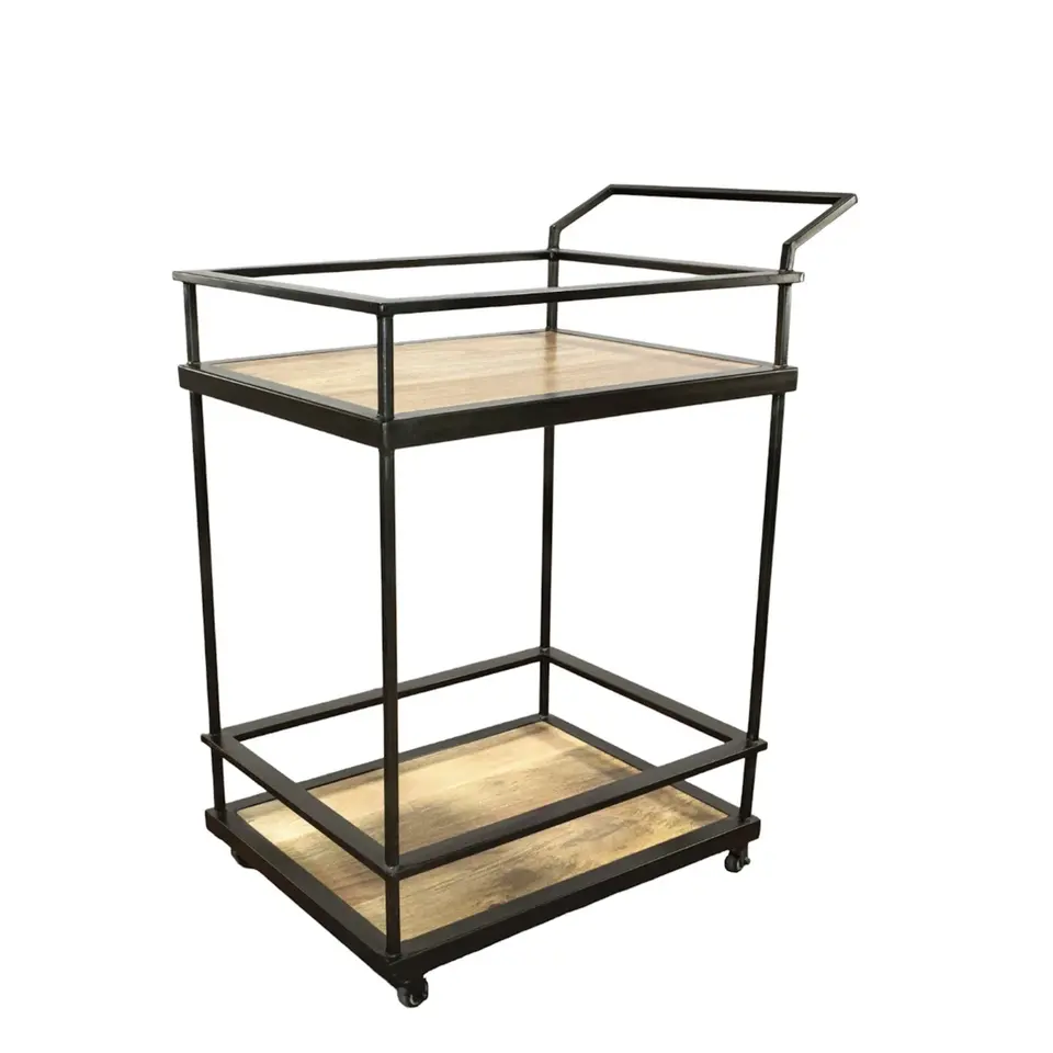 Chariot de service utilitaire de luxe en céramique fait main, robuste et écologique, style américain, pour bar à cocktails, noir, multi-niveaux, sécurisé