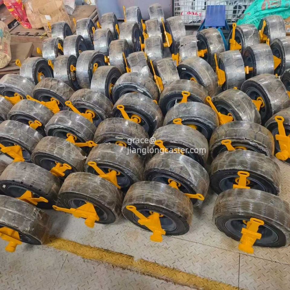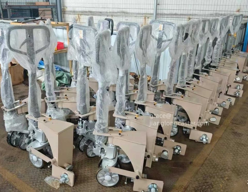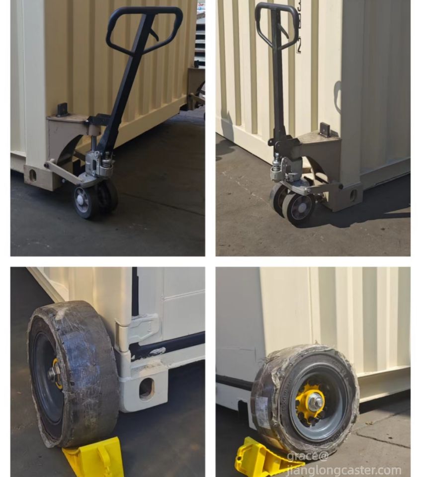 Kit de roue de montage latéral de levage de conteneur en acier hydraulique robuste plaque de base d'angle ISO de nivellement réglable pour omnidirectionnelle