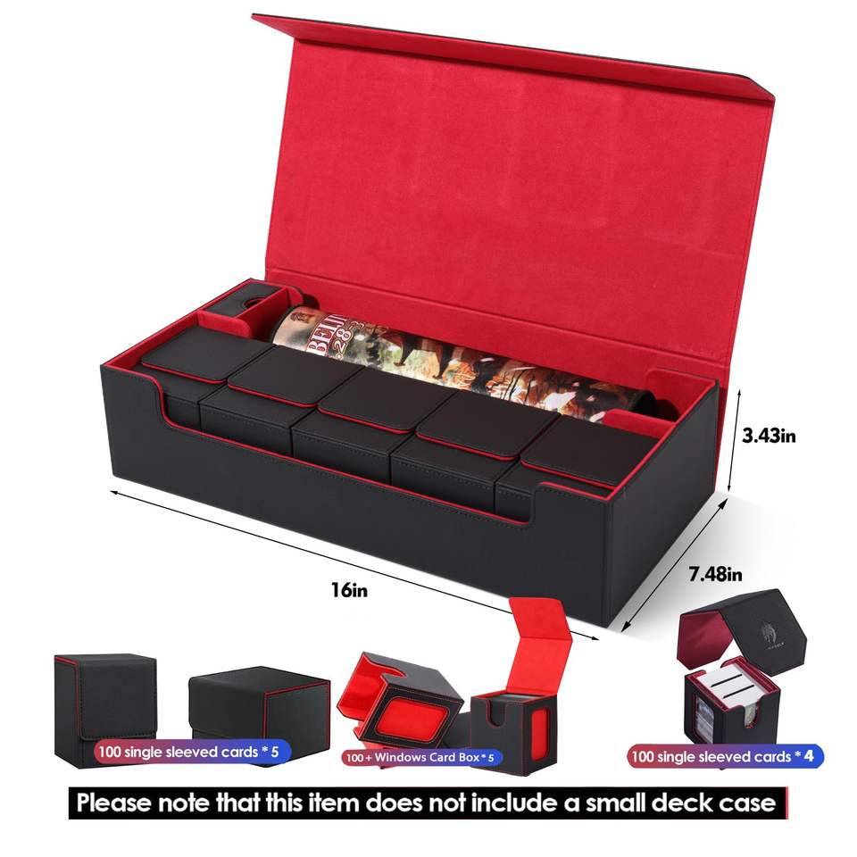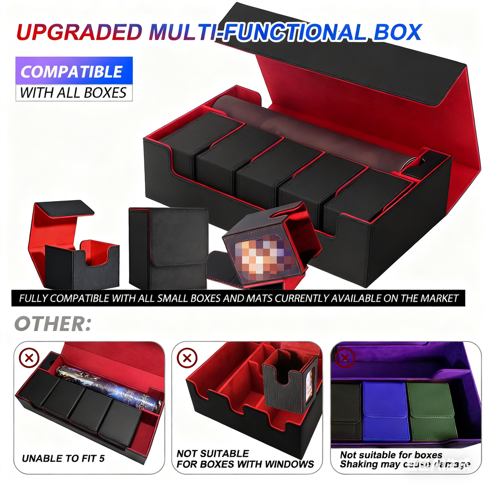 Boîte de rangement pour cartes à collectionner en cuir robuste, noire et rouge, multi-usages pour jeux de société, cartes, dés et collections